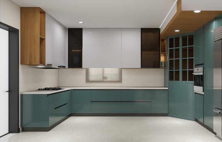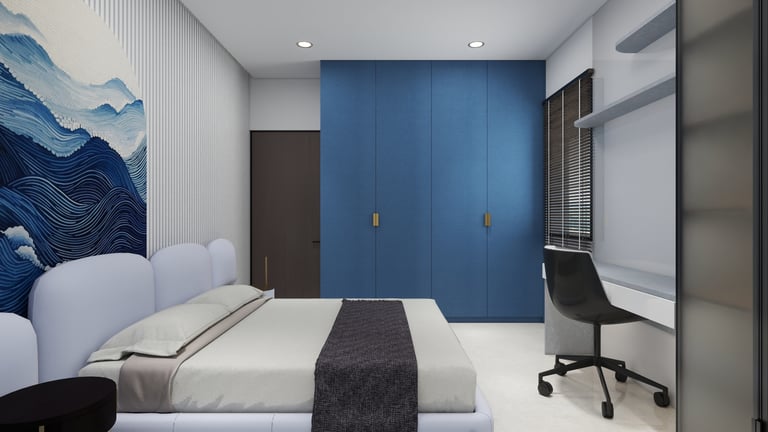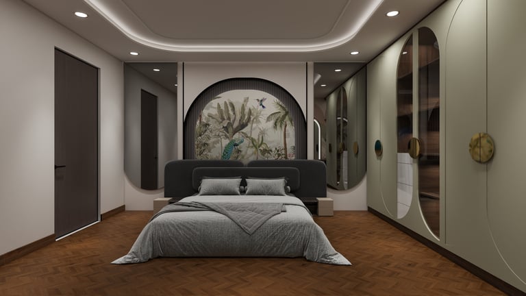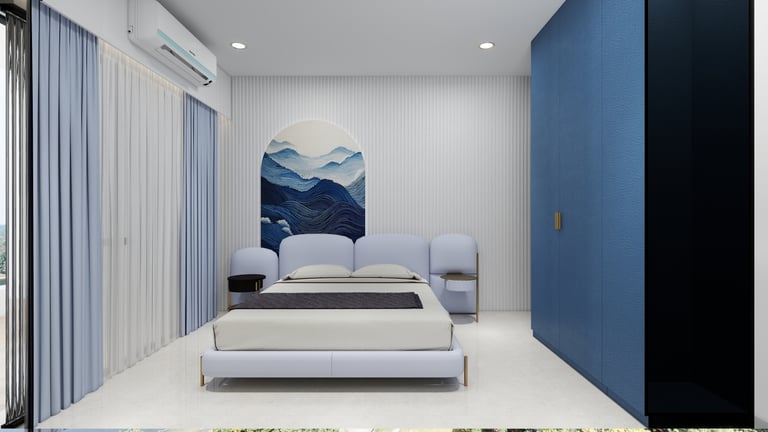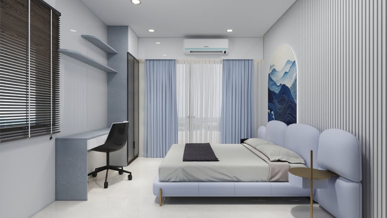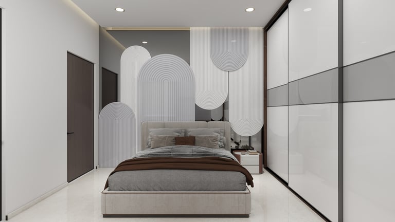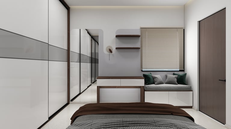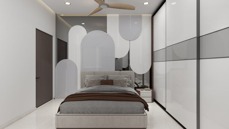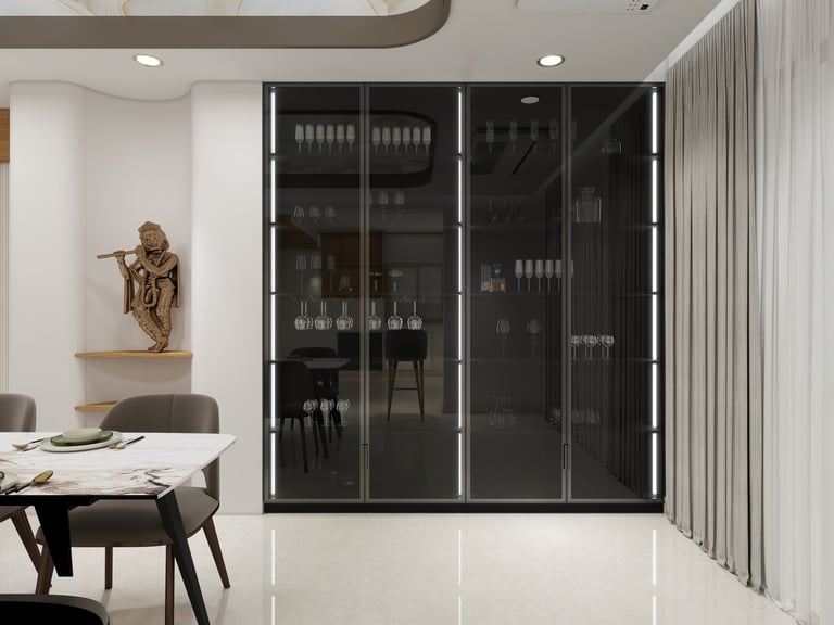3BHK residential interior in Manikonda, Hyderabad, that blends contemporary aesthetics with functional living . The design philosophy centers on creating an open, airy, and luxurious feel through a strategic use of colors, materials, and bespoke elements.