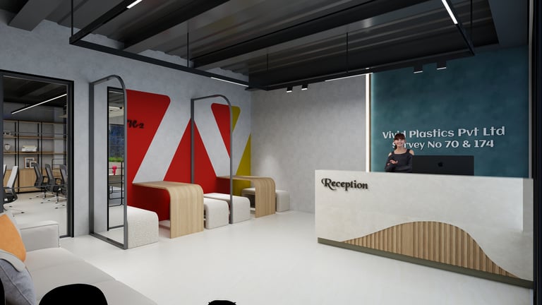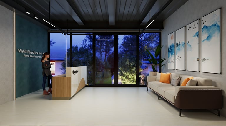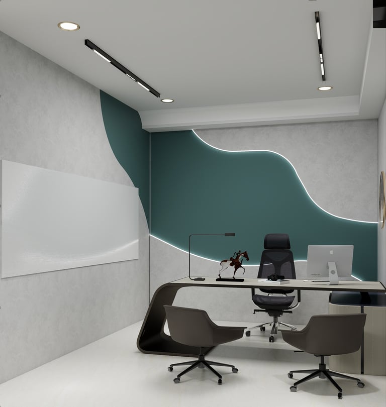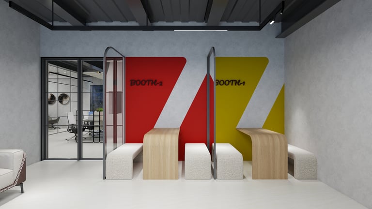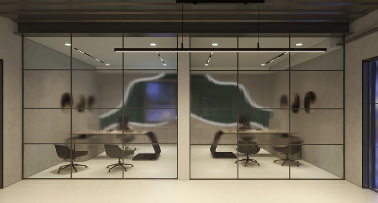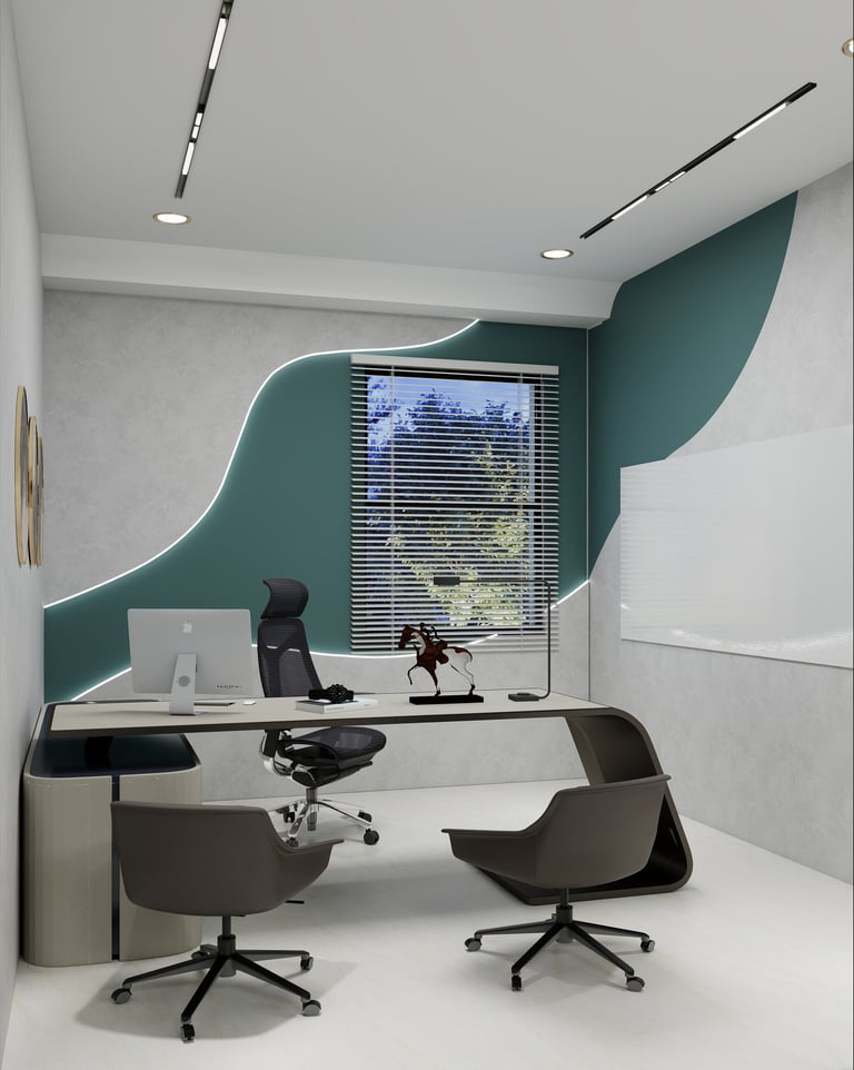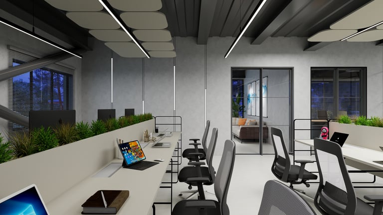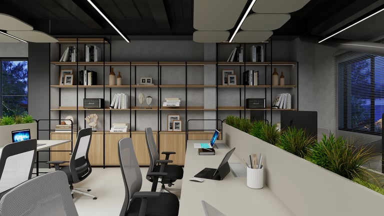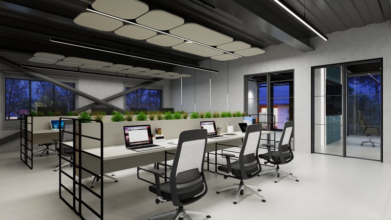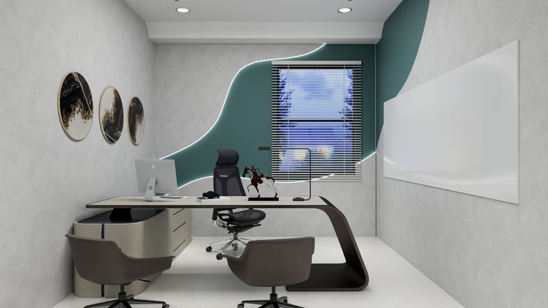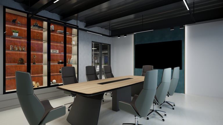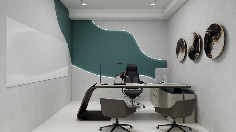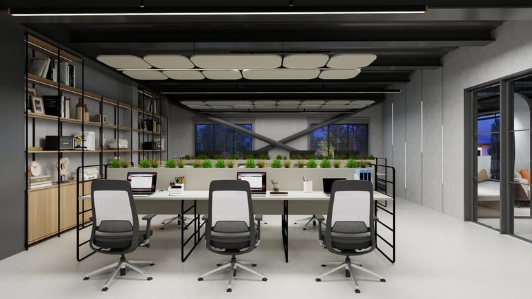 Step into a workspace designed for clarity and calm. This interior utilizes a minimalist approach with a gentle color scheme to create an open and airy feel. Experience the power of subtle design in fostering a productive and peaceful work environment.